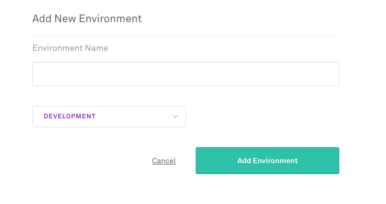 There are four types of Environments: Development, QA, Staging, and Production. Use Production for your integration with your Production video players, Staging or QA if you have a staging or QA environment, and Development for your local testing.