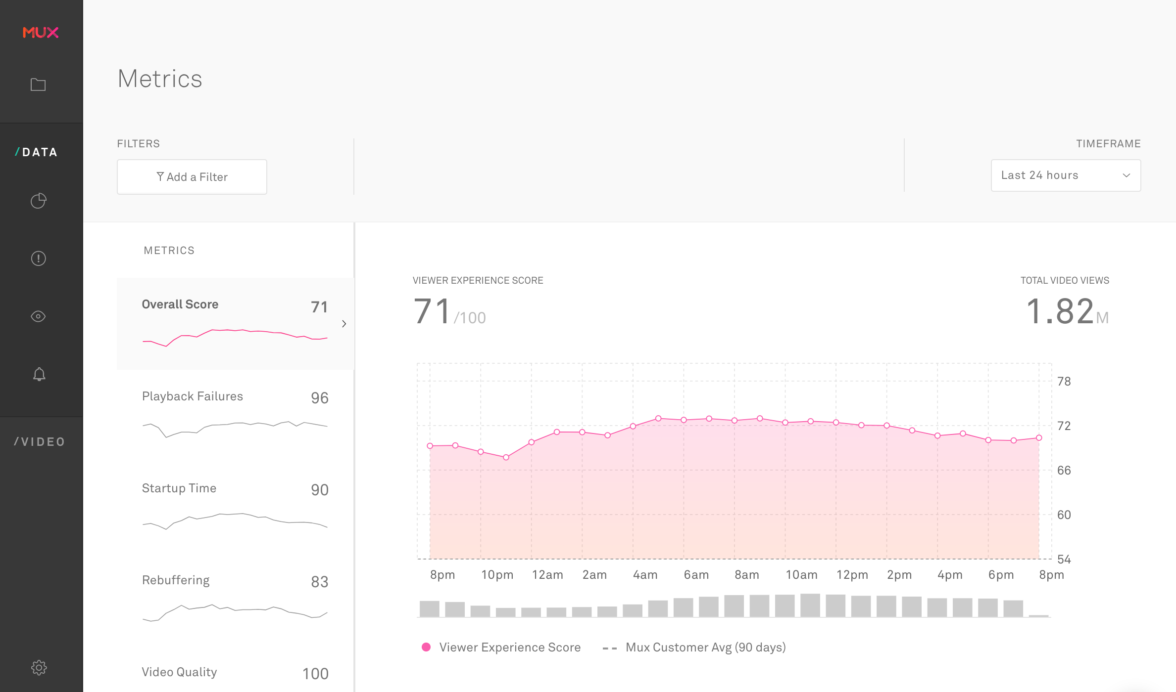 After you've integrated, use the Mux Data dashboard to dive deep into your video streaming performance. Data should start showing up a few minutes after you integrate.